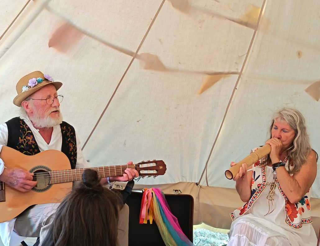 Mettez 2 Bardes: une Conteuse, un Musicien, une Histoire Ancestrale venue du fond des temps au milieu des tout petits et même de plus grands et laissez vous emporter par la Magie du Rêve de la Baleine.